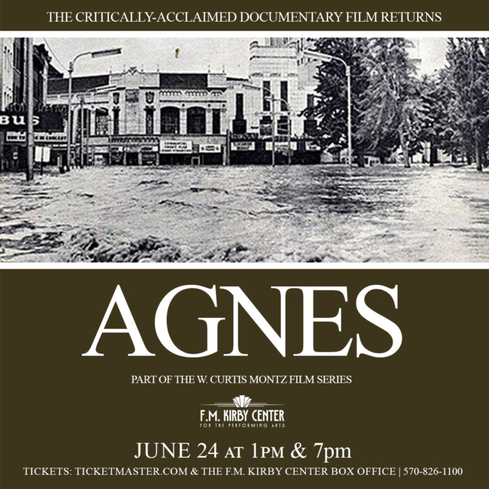 Agnes premiered at The F.M. Kirby Center for the Performing Arts June 2022 to a sold-out house, and, due to popular demand, three additional screenings were added. The documentary includes rare photographs, local news footage, newspaper clippings, interviews with Agnes survivors, and, for the first time ever, archived national network footage. It was not shown on television. Hailed as “emotional,” “powerful” and “inspiring,” the film serves as a testament to the strength and fortitude of the people of the Wyoming Valley, who overcame what at the time was the worst natural disaster in U.S. history.