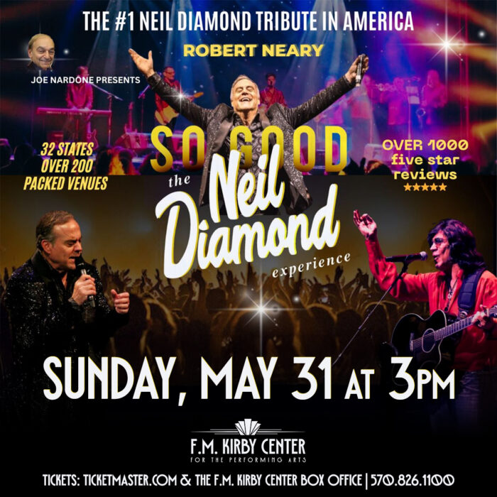 Joe Nardone Presents: So Good! The Neil Diamond Experience live at the F.M. Kirby Center for the Performing Arts in Wilkes-Barre, PA, at 3:00 P.M. Sunday, May 31st, 2026.