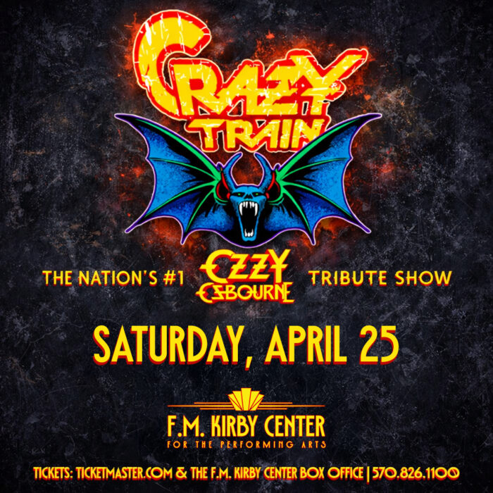 The nation’s #1 Ozzy Osbourne tribute show, Crazy Train, rocks the F.M. Kirby Center for the Performing Arts in Wilkes-Barre, PA, on Saturday, April 25th, 2026, at 8:00 P.M. Presented by Friendly Hart Productions.