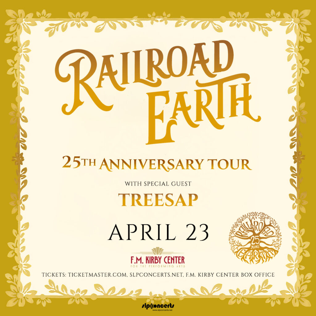Americana band TreeSap, featuring members of Cabinet, has joined as special guest for Railroad Earth’s 25th Anniversary Tour stop at the F.M. Kirby Center for the Performing Arts in Wilkes-Barre, PA, on Thursday, April 23rd, 2026, at 8:00 P.M.
